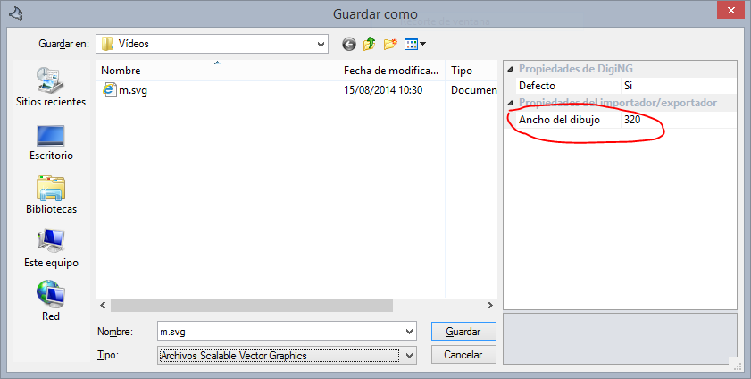 - En el campo Ancho del dibujo especificar el ancho en píxeles que tendrá el dibujo en el archivo resultante.