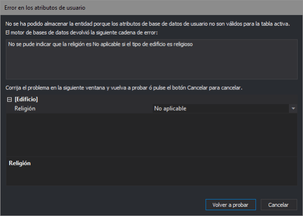 Por ejemplo se podría detectar como error de atributo sin tener en cuenta la geometría que se está intentando almacenar el caso de que un edificio sea de tipo religioso pero que en tipo de religión se indique desconocido.