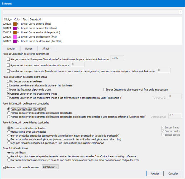 Este cuadro de diálogo lleva en la versión .NET seis años y como puedes comprobar utiliza el antiguo sistema de tablas en archivos, de modo que si queremos detectar intersecciones entre curvas de nivel tendremos que crear un archivo con los códigos de las curvas de nivel y luego seleccionar el archivo.