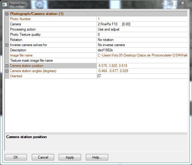 Propiedades de la imagen ← Anterior Siguiente → Cuadro de diálogo mostrando las propiedades de la cámara asociada con la imagen DSCF1982S