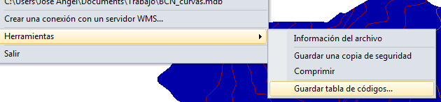 MenuGuardarTablaCódigos ← Anterior Siguiente → Digi3D.NET mostrando el menú de opciones Guardar Tabla de códigos